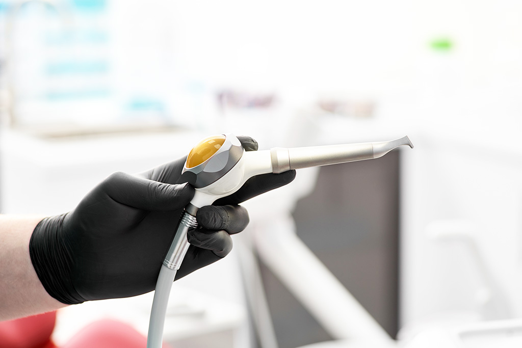 当院では歯科衛生士もマイクロスコープを使用することが大きな特徴です。さらにジェット水流とパウダー粒子で汚れを除去する「エアフロー」を使って、すみずみまで汚れを除去していきます。