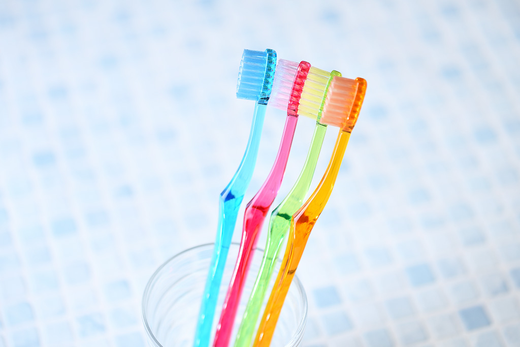新しい歯ブラシで落とせる歯垢を100%とすると、毛先の開いた歯ブラシでは歯垢を62.9%しか落とせないというデータがあります。歯ブラシの寿命はだいたいひと月なので、忘れないように交換日を決めておくとよいでしょう。